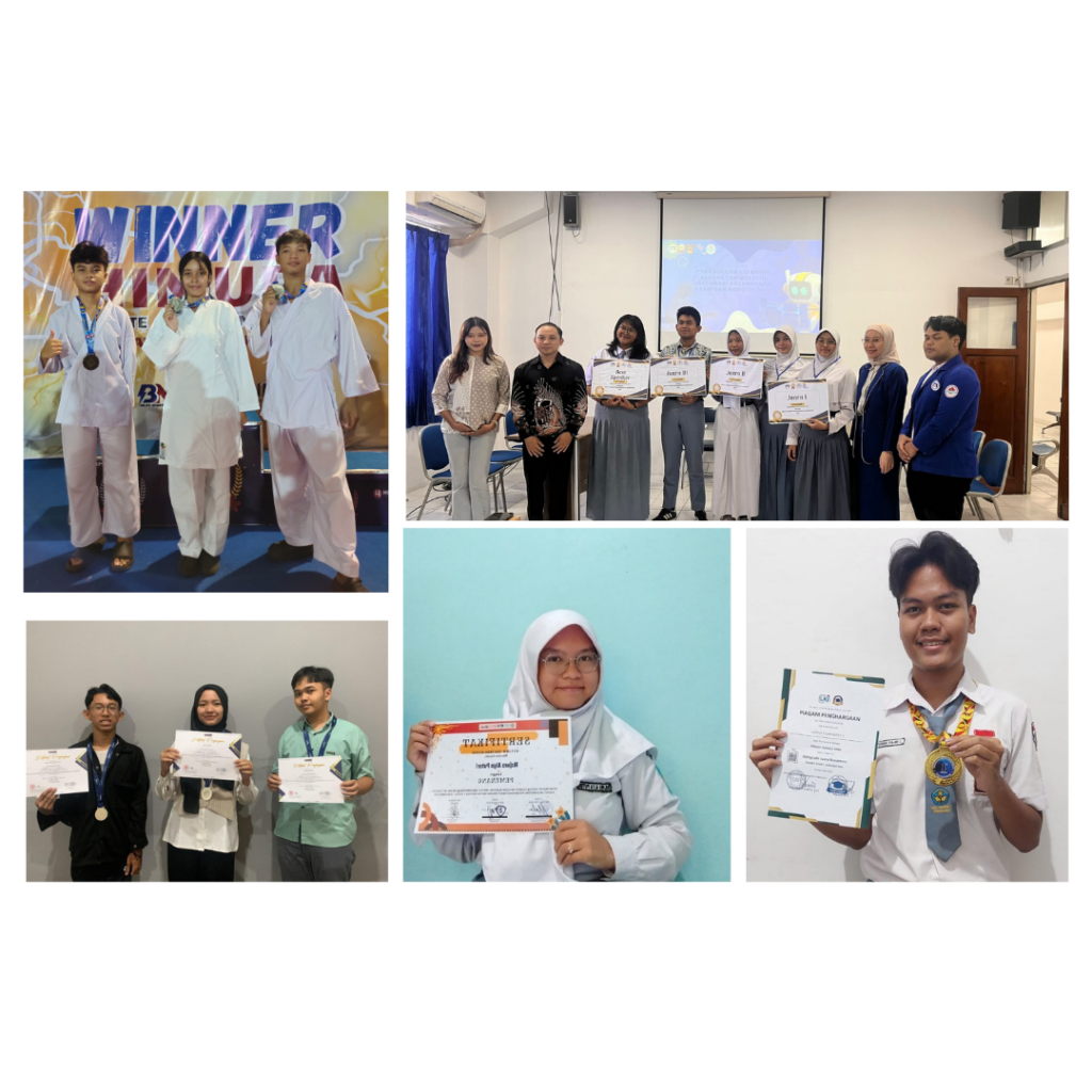 Diawali dibulan November murid kelas XI-1 Najwa Alya Puteri dinobatkan sebagai pemenang kegiatan Campaign Volunteer Hari Kesehatan Nasional (HKN) 2025 oleh KASTRAT dan PENGMAS BEM FKM UNAIR, pada bulan berikutnya murid kami Ghina Aulia Rahma (XI-1), Julian Dedy Pratama (XI-1), Raffarel Jozka Dafiq Prihantara (XI-1) merebut mendali perak dalam ajang National Applied Science Project Olimpiad 2025 (Online Competition) yang diselenggarakan oleh IYSA di Universitas Gadjah Mada dengan judul penelitian “Alkimia Nano: Upcycling Cr(VI) Menjadi Cr(III) Pada Limbah Baterai Li-Ion Sebagai Aditif Ramah Lingkungan Pada Cat Self-Cleaning TiO2”.